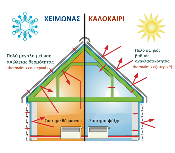 Η θερμομόνωση προστατεύει τα εξωτερικά δομικά στοιχεία από τις θερμικές καταπονήσεις μειώνοντας σημαντικά την πιθανότητα δημιουργίας ρωγμών και σχισμών στα εξωτερικά επιχρίσματα.